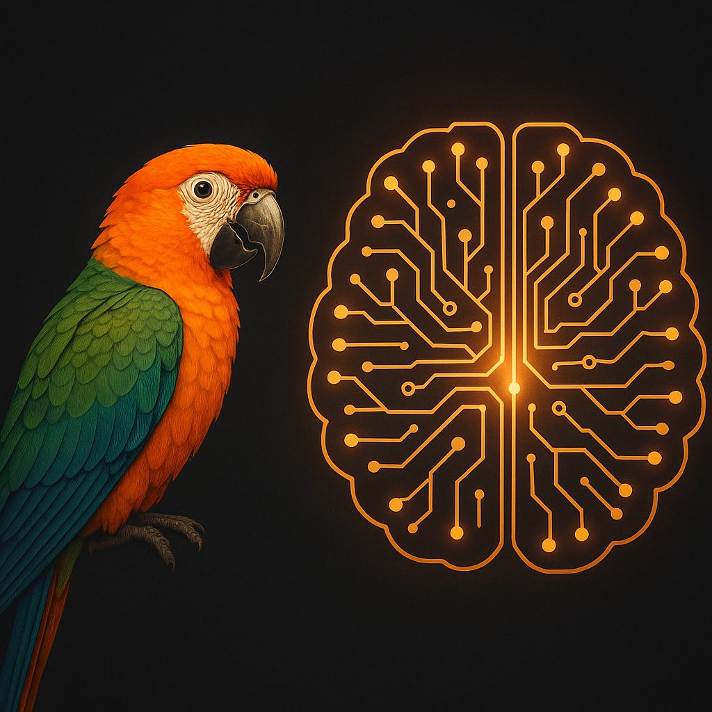 AI language models are everywhere now, writing text, answering questions and generating computer code with impressive skill. But a big question hangs over them: are they truly intelligent, or just incredibly good impersonators? One popular critique labels them as "stochastic parrots", systems that cleverly stitch together words based on statistical patterns learned from massive amounts of text, without any real understanding of what they're saying (Bender et al., 2021). They repeat, or 'parrot', patterns they've seen, making statistically likely ('stochastic') guesses for the next word.