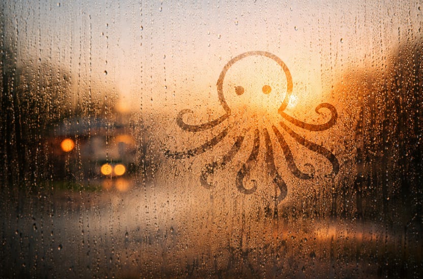 The knee in my ribs at 5:47. The octopus facts. The missing shoe. The permission slip on the fridge, invisible to me. Her hand on my arm. The meeting I half-attended. The toast I ate because she made it. The painting on the classroom wall. The death metal in the car. The story about dreams.